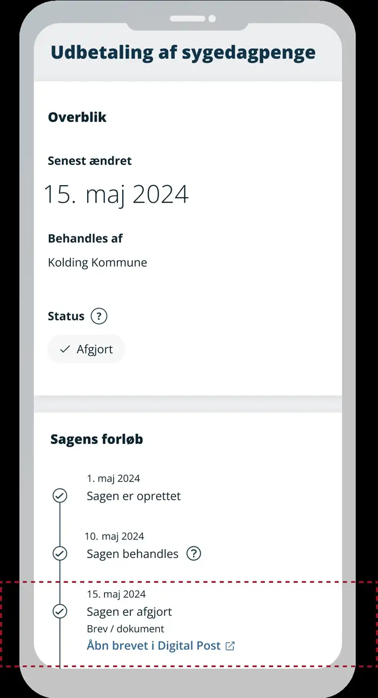 I forbindelse med release 33 i december 2024 blev det muligt for myndigheder at linke dybt fra et sagstrin på en sag på Mit Overblik til den relevante meddelelse i Digital Post. Det dybe link skal understøtte brugerrejsen på tværs af Mit Overblik og Digital Post. Ankestyrelsen var den første myndighed, der gjorde brug af funktionaliteten, og i løbet af foråret (forventeligt ml. release 34 og release 35) bliver kommunerne de næste til at linke dybt fra visse sagstyper til Digital Post. Linket skal understøtte borgerens indsigt i egen sag på tværs af Mit Overblik og Digital Post, hvor Mit Overblik giver overblikket over sagens forløb, mens Digital Post indeholder de formelle beskeder med de mange detaljer, der knytter sig til sagen. Kommunerne kommer løbende på med dybe links til Digital Post på flere sagsområder.