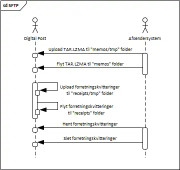 SFTP Snitfladen understøtter masseforsendelser, hvor disse pakkes og placeres på en sikker server, hvorefter løsningen samler disse og foretager forsendelse. Afsendersystem uploader tar.lzma, indeholdende en eller flere meddelelser, til SFTP-serveren. Efter behandling gør løsningen forretningskvittering for hver meddelelse tilgængelig i en dedikeret folder på SFTP-serveren. Herefter skal afsendersystem hente og slette kvitteringer inden for 14 dage. Kvitteringer slettes automatisk efter 14 dage uanset om de er blevet hentet eller ej. Alle forsendelser via SFTP behandles som masseforsendelser og leveres til modtager hurtigst muligt, inden for 24 timer.