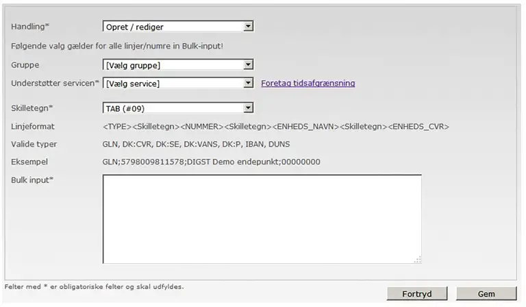 Når der er valgt ”Opret / rediger” vises der nogle yderligere felter: