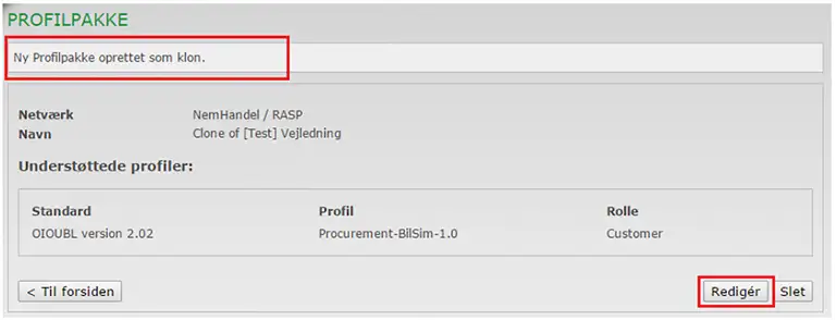 Klik på ’Rediger’ for at tilføje eller slette understøttende profiler og for at ændre navn på den klonede profilpakke.