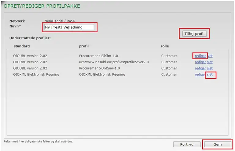 Når profilpakken er oprettet/redigeret, gemmer du ved at klikke på ’Gem’.