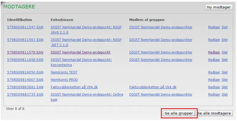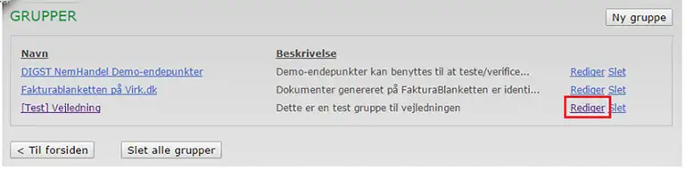Du får nu en oversigt over alle grupperne. Klik på ’Rediger’ ud for den enkelte gruppe for at få mulighed for at redigere denne.