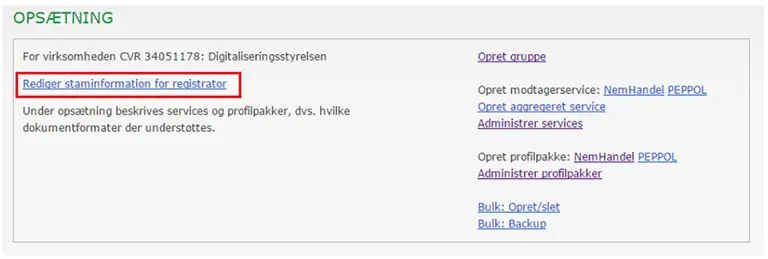 - Klik på ’Rediger staminformation for registrator’